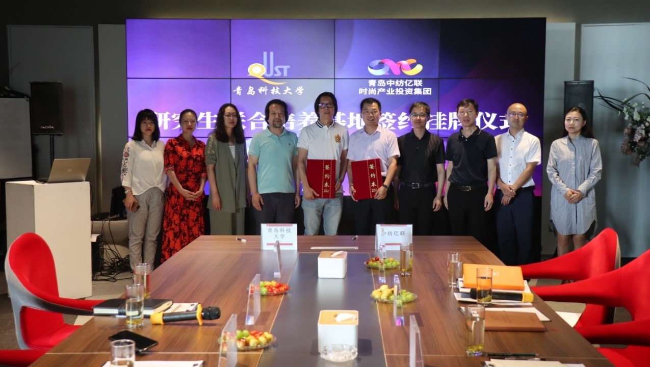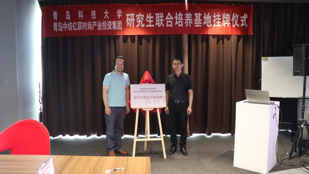 青岛科技大学艺术学院副院长曲国先、东方时尚学院院长赵华民分别代表合作双方进行签约。青岛科技大学艺术学院副院长曲国先、青岛中纺亿联时尚产业投资集团总经理王耀东分别代表合作双方为“研究生联合培养基地”揭牌。