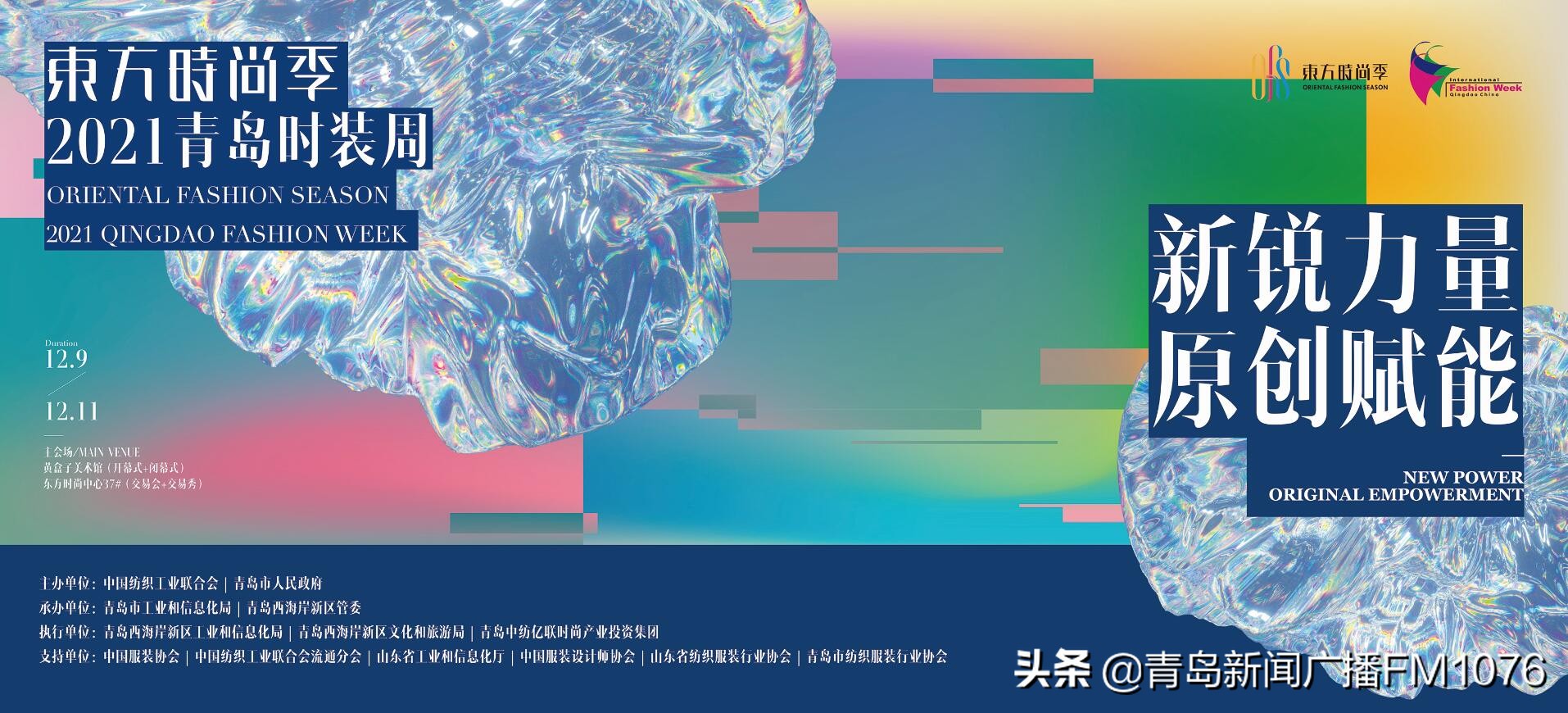 东方时尚季•2021青岛时装周将于12月9日在东方时尚中心璀璨绽放。本次活动由中国纺织工业联合会、青岛市人民政府主办,青岛市工业和信息化局、青岛西海岸新区管委承办,中国服装协会、中国纺织工业联合会流通分会、山东省工业和信息化厅、中国服装设计师协会、山东省纺织服装行业协会、青岛市纺织服装行业协会支持,青岛西海岸新区工业和信息化局、青岛西海岸新区文化和旅游局、青岛中纺亿联时尚产业投资集团有限公司执行。