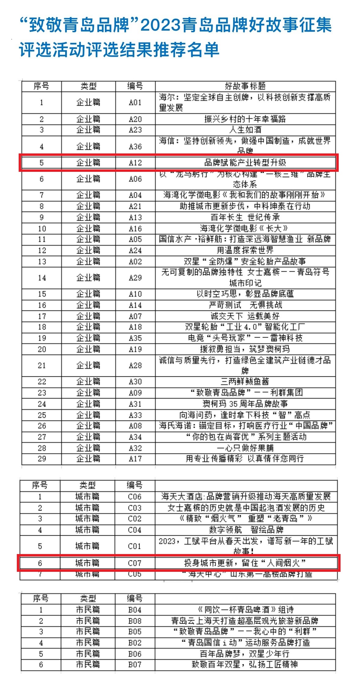 据介绍,“致敬青岛品牌”2023青岛品牌好故事征集评选包括企业篇、市民篇、城市篇三个系列,自活动开展以来,青岛企业、社会公众踊跃参与,经过初步筛选、网络投票、专家评审,共选出42个“青岛品牌好故事”。该活动通过深入挖掘这些品牌故事,发现背后的品牌内涵,探索青岛品牌的成长密码,展示青岛品牌的魅力价值,引导社会共同见证青岛品牌的崛起与发展。